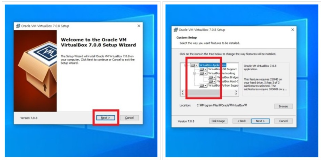 이제 설치 준비는 거의 다 끝났다. 프로그램 구동에 필요한 필수 기능들이 설치 안내사항에 보여지는데 예 버튼을 누르면 되겠다. 잠시 후 설치 준비가 모두 끝난 상태에서 인스톨 버튼을 누르면 가상머신 프로그램 설치를 진행해 볼 수 있었다. 이제 설치가 시작되기까지 조금만 더 기다리면 된다.