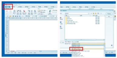 기존에는 hwp 형태로 만들어져 있던 파일이 새로운 경로에 docx 워드 파일로 변경된 것을 확인할 수 수 있었다. 당연히 hwp 워드 변환을 했기 때문에 MS워드를 실행한 상태에서 문제 없이 파일을 불러올 수 있었다.
