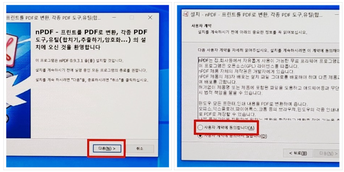 잠시 후 설치를 진행하기 위해서 아래에 있는 다음 버튼을 누르도록 한다. 가급적 설치 옵션 중 하나인 프린터 설치하기는 체크한 상태로 설치를 진행하는 것이 좋다. 모든 준비가 끝났다면 설치 버튼을 누르면 피디에프를 편집할 수 있는 npdf 설치작업을 진행해 볼 수 있다. 이는 꽤 쓸만한 유틸리티라 유용하였다.