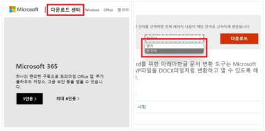 만약 한컴오피스가 설치되어 있지 않다면 hwp 워드 변환 작업을 위한 별도 프로그램을 준비해야 한다. 마이크로소프트에서 제공하는 유틸리티로서 MS 다운로드 센터에서 간단히 설치파일을 받을 수 있다. 이 프로그램을 이용하면 한글파일을 워드로 무료 변환이 가능하다.